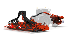 La tramoggia disponibile è PA1 con capacità fino a 1.100 litri con azionamento elettrico, gestione di tipo Isobus e distributori volumetrici intercambiabili a seconda della tipologia e della grandezza dei semi. Il sistema di dosaggio lavora in tandem con un ventilatore a girante ad azionamento idraulico per il trasporto pneumatico del seme. Dalla tramoggia frontale il seme arriva al solco di semina passando attraverso il fungo di distribuzione montato sull’erpice, che distribuisce il prodotto in maniera omogenea all’interno delle singole calate.