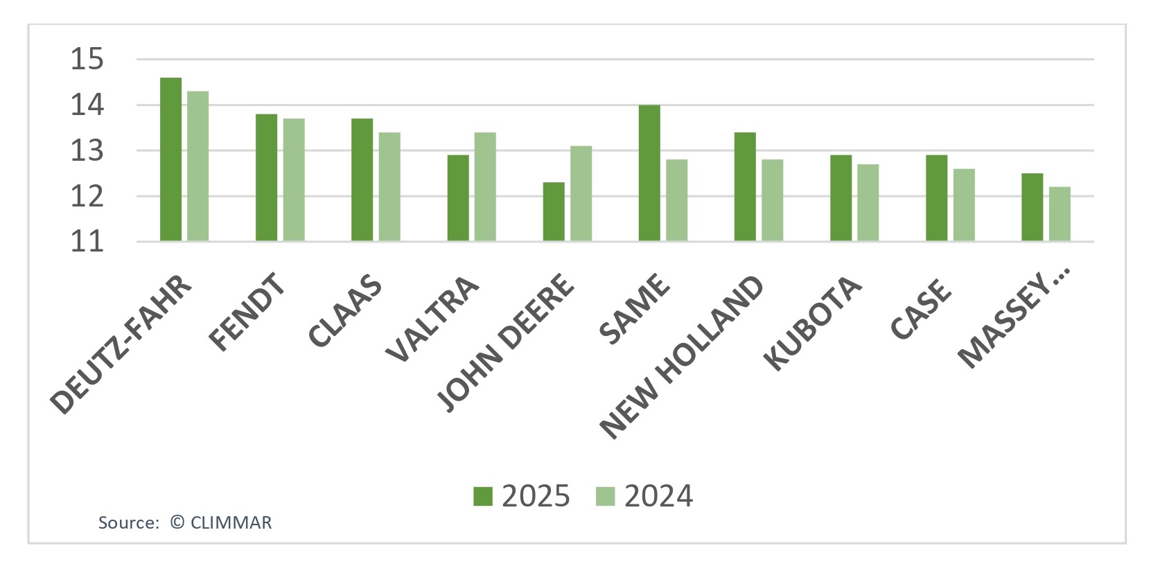 I risultati del Dsi 2025, resi noti da Climmar (l'associazione europea dei commercianti di macchine agricole) in occasione di Agritechnica, confermano Deutz-Fahr come il marchio più apprezzato dai concessionari europei. In un percorso di crescita costante che negli ultimi quattro anni ha visto il brand risalire dal terzo posto fino al primato, Deutz-Fahr ha superato la media degli altri competitor soprattutto grazie all’elevato punteggio nelle categorie Marketing e Rapporti Costruttore-dealer.