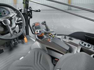 I gradini di accesso facilitano l'accesso e l'uscita dalla cabina, mentre il serbatoio per il lavaggio delle mani e la cassetta degli attrezzi esterna integrata sono completati da un ampio gavone in cabina. Il livello di rumorosità della cabina è di soli 68 decibel e la dotazione standard comprende il terminale touchscreen IntelliView 12, attraverso il quale gli operatori possono impostare e monitorare il trattore e qualsiasi attrezzo Isobus. Le funzioni includono la modalità Baler, che riduce il movimento della cabina quando si lavora con grandi presse quadrate, modificando costantemente la corsa della sospensione dell'assale anteriore per ridurre il movimento della cabina e il regime del motore.