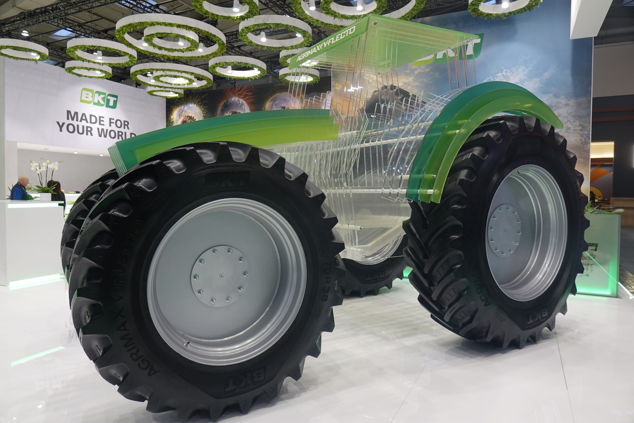 Allo stand spiccava anche la presenza dell’iconico trattore in plexiglass, che su entrambi gli assi equipaggia uno dei prodotti di punta della multinazionale indiana, Agrimax V-Flecto, sviluppato per l’ultima generazione di irroratrici semoventi ad alta capacità, a conferma dell’impegno di Bkt nel fornire prodotti in linea con le esigenze di produttività e sostenibilità, soprattutto nelle fasi più cruciali della stagione agricola.