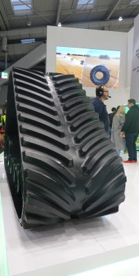 Un’ampia gamma di innovazioni che non trova espressione soltanto negli pneumatici, ma si estende oltre, verso i cingoli in gomma, che nel settore della meccanizzazione agricola stanno acquisendo un ruolo sempre più strategico. La risposta di Bkt a queste esigenze è Agriforce BK T71, esposto nella misura 36x6x44, progettato per le mietitrebbie di nuova generazione, dunque con dimensioni notevoli e carichi importanti.