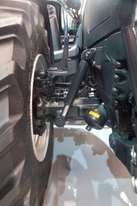 Motore e trasmissione sono integrati in posizione ribassata nel telaio, garantendo non solo un lavoro sicuro sui terreni in pendenza, ma anche una migliore visibilità anteriore. L’asse anteriore sospeso Proactiv, disponibile come optional e dotato di struttura multilink, consente angoli di sterzata ridotti per manovre in spazi estremamente ristretti e, grazie a 80 mm di escursione, aumenta il comfort di guida sia su strada sia fuori strada. La sospensione può essere utilizzata in modalità automatica, regolata manualmente oppure disattivata. I cilindri di sospensione, ampiamente distanziati su entrambi i lati, migliorano stabilità e sicurezza nelle curve affrontate ad alta velocità.