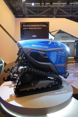 New Holland ha sviluppato due versioni del concetto di macchina autonoma R4, ciascuna su misura per soddisfare le esigenze specifiche dei diversi settori delle colture specializzate. Entrambe sono dotate di unità di trasmissione con cingoli in gomma sospesi per massimizzare la trazione e ridurre al minimo la compattazione, e incorporano una trasmissione elettrica intelligente a variazione continua. Sono in grado di alimentare gli attrezzi elettricamente senza olio idraulico, riducendo i requisiti di manutenzione, i componenti, il peso, le emissioni, i costi e la compattazione. Entrambe le macchine sono compatibili con gli attrezzi esistenti.