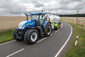 Per la prima volta su un trattore New Holland è disponibile anche un sistema di gonfiaggio centrale integrato degli pneumatici. Questo sistema consente di utilizzare i pneumatici a flessione aumentata (IF) o a flessione molto elevata (VF) alle pressioni più basse consigliate durante il lavoro sul campo, per allungare l'impronta degli pneumatici, aumentare il contatto con il terreno, ridurre al minimo lo slittamento delle ruote e la pressione e massimizzare l'efficienza del carburante. Una volta terminato il lavoro sul campo, è possibile un rapido rigonfiaggio dalla cabina per viaggiare su strada alla massima velocità consentita, tramite un compressore d'aria bicilindrico ad alta capacità azionato da un ingranaggio.